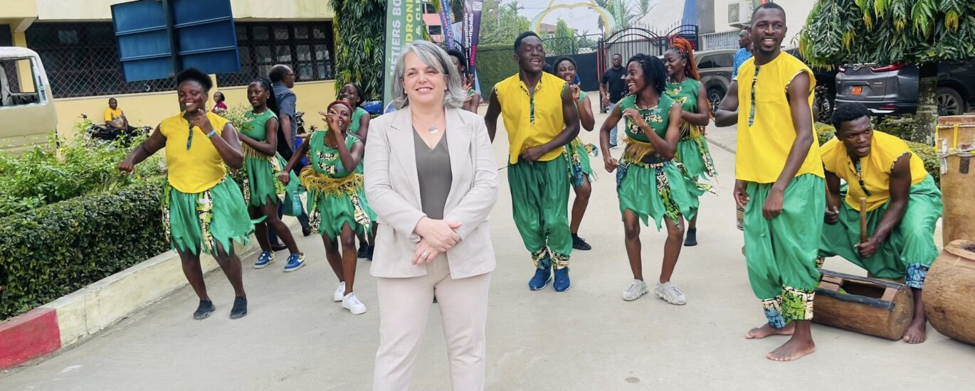 Le jeudi 20 novembre 2025, les campus de Logbessou et de Bonamoussadi–Denver ont vibré au rythme des sons et danses culturelles lors de la visite officielle de Son Excellence Marie-Claude HARVEY, Haute-Commissaire du Canada auprès de la République du Cameroun.